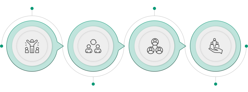 We let your internal data determine which of our organization wide DEI strategies makes the most sense based on your strengths and weaknesses. Then, we decentralize efforts by allowing you to segment your organization down to the team level, and curating team level recommendations based on that team’s data. We also provide interventions at an individual level, effectively engaging change across organizations at an individual, interpersonal, and organizational level. Our culture change methodology follows the socioecological model for change, activating all levels of the organization for effective change.